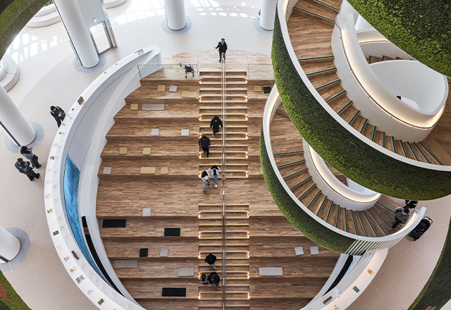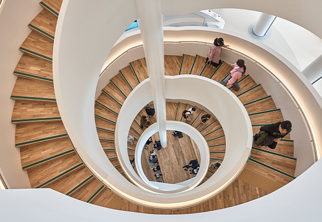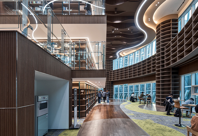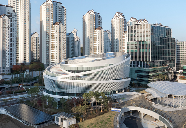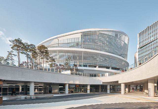 Gyeonggi Library—the largest locally built public library in Korea—redefines the library as a cultural platform for future knowledge sharing. Drawing from the Greek bibliothêkê (“a place for scrolls”), its design transforms the scroll’s continuous narrative into a helical spatial flow anchored by the central “Well of Wisdom,” which integrates movement, browsing, and interaction. A precise BIM workflow enabled the spiral form and irregular double-skin façade, which balances transparency and reflection to enhance daylight and energy performance. Combined with natural ventilation, geothermal systems, and photovoltaics, the library earned Korea’s highest Green Building and 1++ Energy Efficiency ratings. The result is an open civic living room—a sustainable, knowledge-driven space connecting people, nature, and the city.