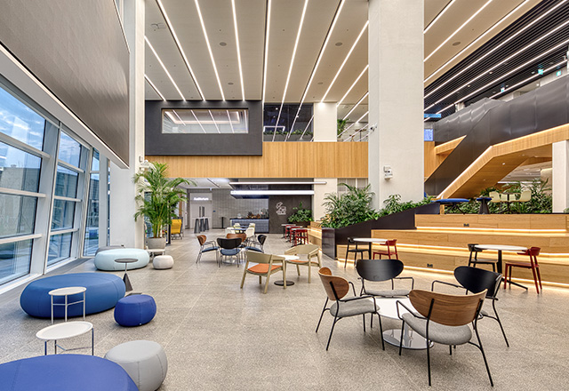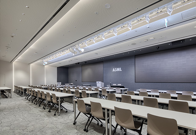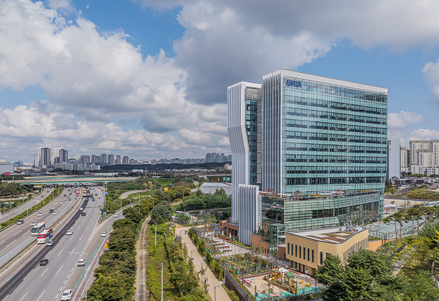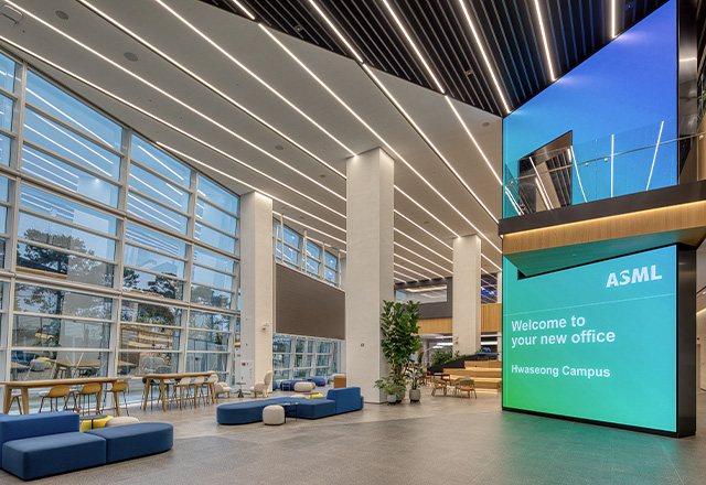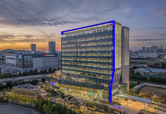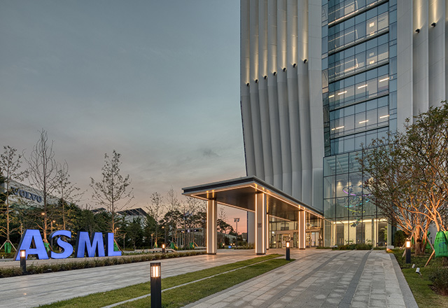 The ASML Hwaseong Campus is located southeast of the Dongtan Interchange, directly facing the Gyeongbu Expressway, a major transportation corridor. Responding to this urban and architectural context, the building was conceived with a distinctive design that sets it apart from its surroundings. To reflect the identity of ASML Korea as a key player in the semiconductor industry, the façade draws inspiration from the wiring patterns of semiconductor chips. Deep, inclined vertical louvers integrated into the building envelope mitigate highway noise while softly diffusing natural light into the interior. The refined curtain wall façade opens toward a nearby hillside park, offering expansive views of the surrounding urban landscape.