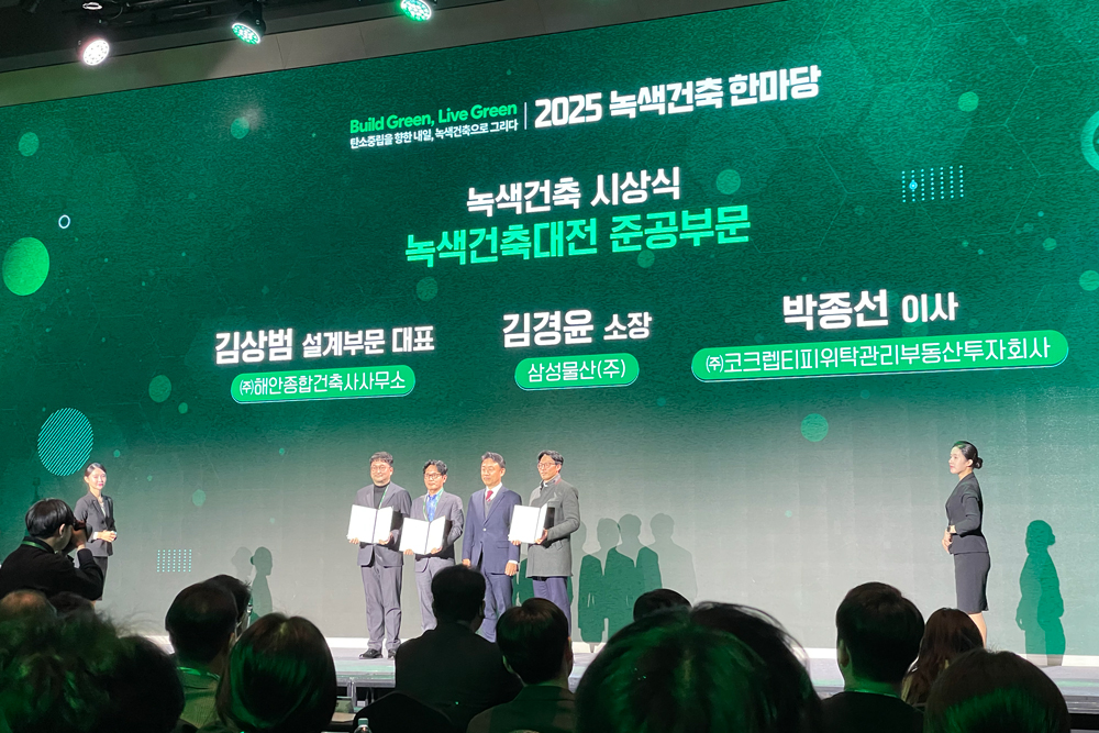 이번 수상을 계기로 지속가능한 친환경 건축에 대한 관심이 더욱 확대되고, 미래 가치 창출로 이어지기를 기대합니다.