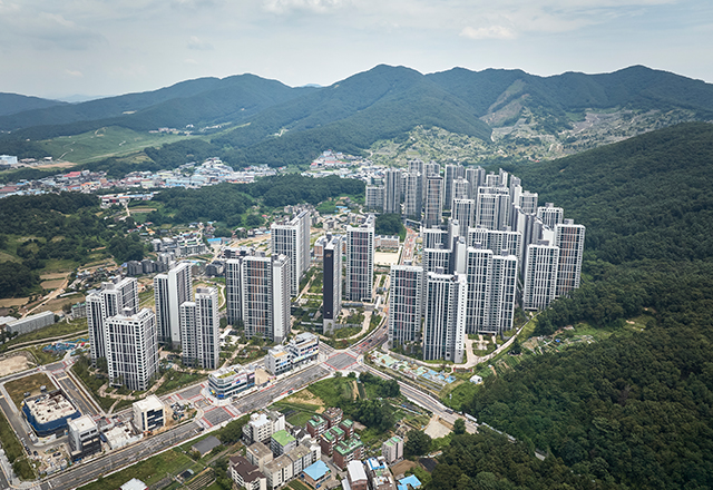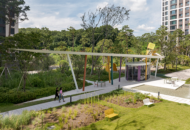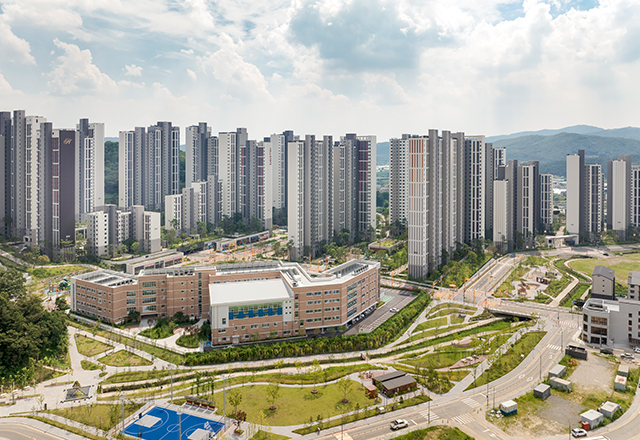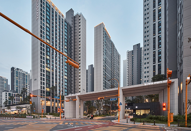 힐스테이트 몬테로이 1, 2, 3단지는 도시의 끝자락에서 자연과 인접한 입지를 갖춘 주거단지로, 다양한 가족 구성원의 요구를 반영해 3개 단지, 총 22개 타입의 단위세대(총 3,731세대)로 계획되었다. 세 개의 단지는 중앙에 초·중학교를 두고 배치되며, 단지 주변은 산자락과 맞닿아 공원 등 자연 공간으로의 접근성이 뛰어나다. 각 단지와 공원, 단지 상호 간을 연결하는 산책로를 조성해 일상 속에서 자연을 경험할 수 있도록 했다. 또한 단지 내 데크를 형성해 분절된 외부 공간에는 커뮤니티 시설을 배치함으로써 외부와 외부, 외부와 내부 공간을 유기적으로 연결하고, 커뮤니티 시설의 접근성과 단지 간 이동 편의성을 강화해 주민 이용률을 높이는 데 중점을 두었다.