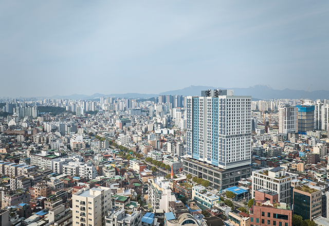중랑구 상봉역 인근 주택가에 위치한 세이지움 상봉은 청년층의 주거환경 개선을 목표로 한 공공지원 민간임대주택으로 계획되었다. 청년 주거 수요에 대응하기 위해 지상 25층, 총 782세대의 주거동과 하부 근린생활시설로 구성하였다. 주변 환경과의 이질감을 완화하기 위해 대지 전면과 후면에 적절한 옥외공간을 확보하고, 상부층 매스를 분절하여 대규모 주거시설로 인한 위압감을 최소화하였다. 내부 공간은 청년층의 라이프스타일과 니즈를 반영하여, 편안한 휴식을 위한 옥상 휴게쉼터, 타워부 중간층의 휴게공간, 저층부의 옥외 휴게공간을 계획하였다. 또한 청년들의 사회적 교류와 활동을 지원하기 위해 다양한 부대복리시설과 코워킹 스페이스를 도입하였다.