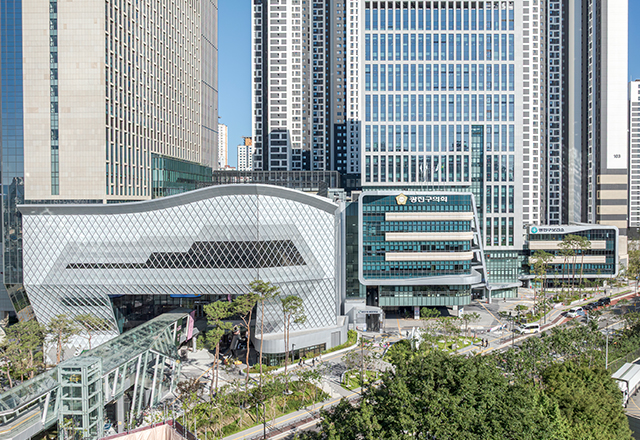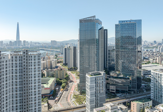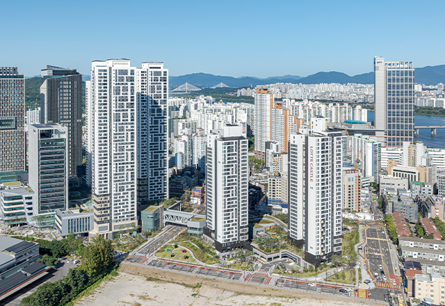 롯데캐슬 이스트폴 & 이스트폴 타워는 공공과 민간이 협력하여 낙후된 도시 환경을 재정비하고자 추진된 복합개발 프로젝트이다. 서울시 광진구 구의역 인근에 위치하여 남측으로는 한강을, 북측으로는 북한산과 아차산의 경관을 가지고 있다. 디자인 컨셉은 '겸재 정선'의 '경교명승첩'에 표현된 광진구의 배산임수 배치에서 영감을 얻었으며, 고층 타워들이 단지 내 배경이 되고 저층부는 보행자의 접근을 고려한 사잇길이 되어 자연친화적인 공간을 구성한다. 또한 고밀 복합 개발임에도 불구하고 45도 배치를 통해 조망과 개방성 및 정면성을 확보했다.