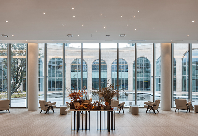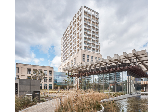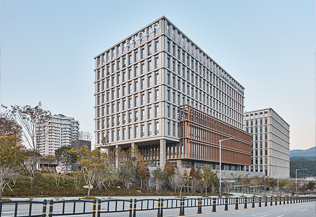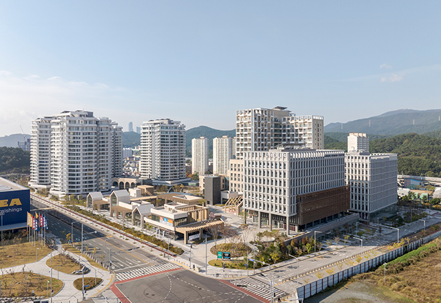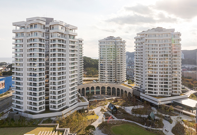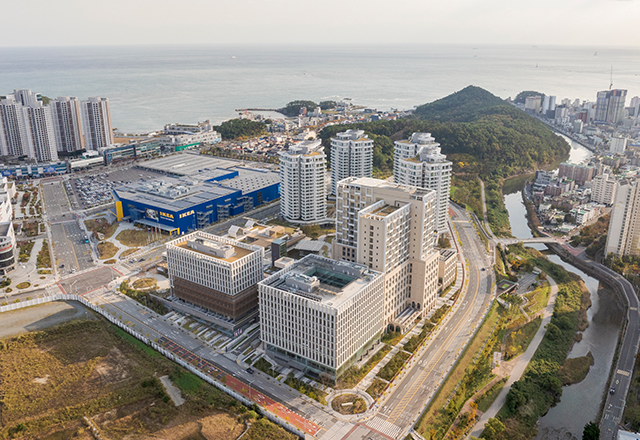 오시리아 메디타운은 국내 최초의 대규모 CCRC(Continuing Care Retirement Community) 구현을 목표로 한 복합시설로, 노인복지주택과 양로시설, 한방병원, 상업시설이 결합되어 있다. 보행 빈도가 가장 높은 북동측에 상업시설을 배치하고, 단층 매스와 넉넉한 외부 공간은 단지 전체에 ‘환영하는’ 인상과 활기찬 분위기를 형성한다. 프라이버시가 중요한 노인복지주택은 상업시설의 반대편에 배치하였으며, 네 개의 타워를 남측 네 개의 모서리에 배치해 바다로 열린 조망과 충분한 일조, 여유로운 동간 거리를 확보하였다. 단지 설계의 주안점은 햇살이 넘치는 ‘밝고 환한 분위기’의 구현과 ‘모여 살기’를 통한 시너지의 발견에 있다. 중앙의 넓은 정원, 중정형 평면, 다수의 넓은 선큰 공간, 가로에 면해 채광이 가능한 지하층, 여유 있는 공용공간을 통해 이러한 목표에 다가가고자 하였다.